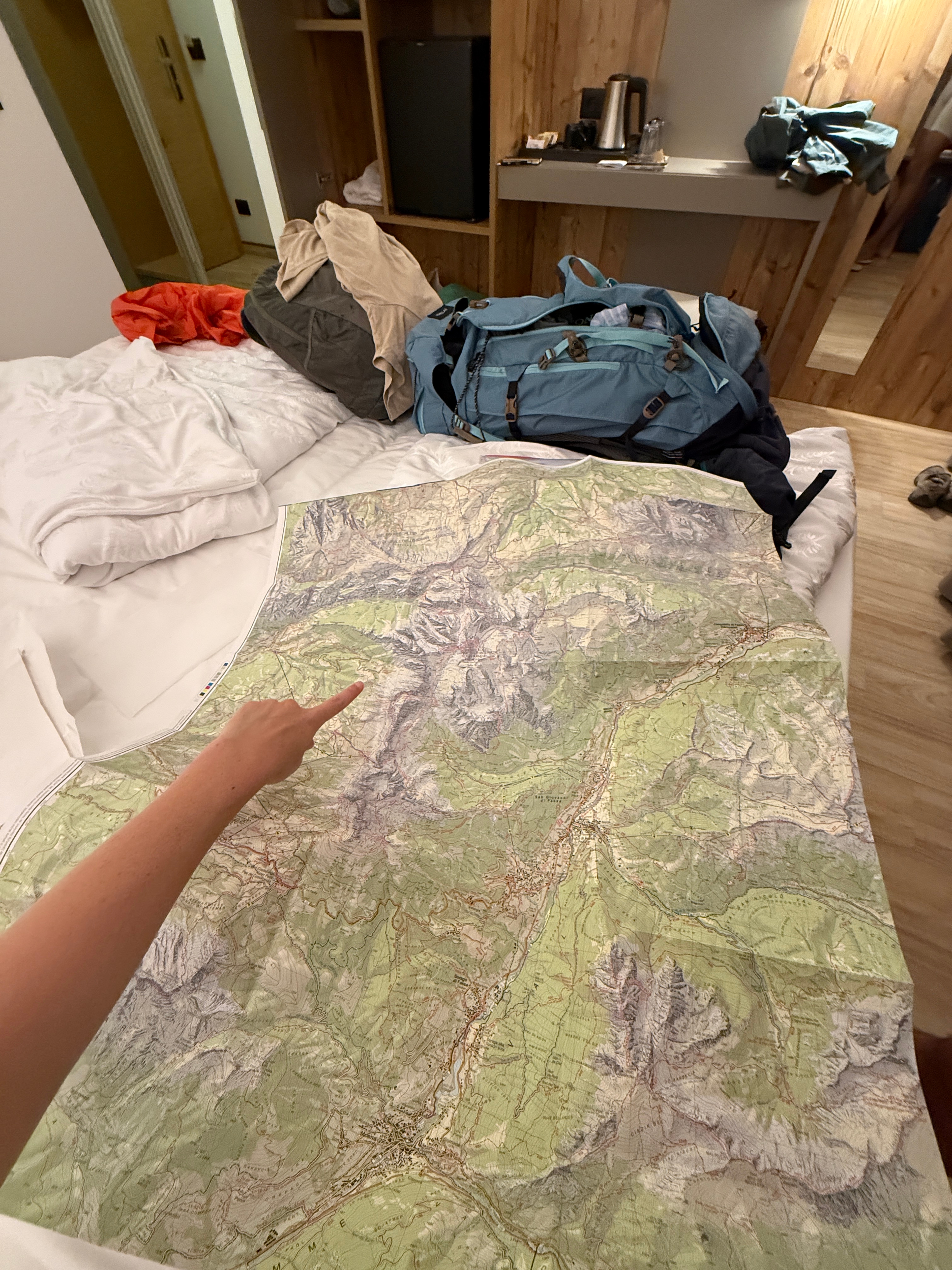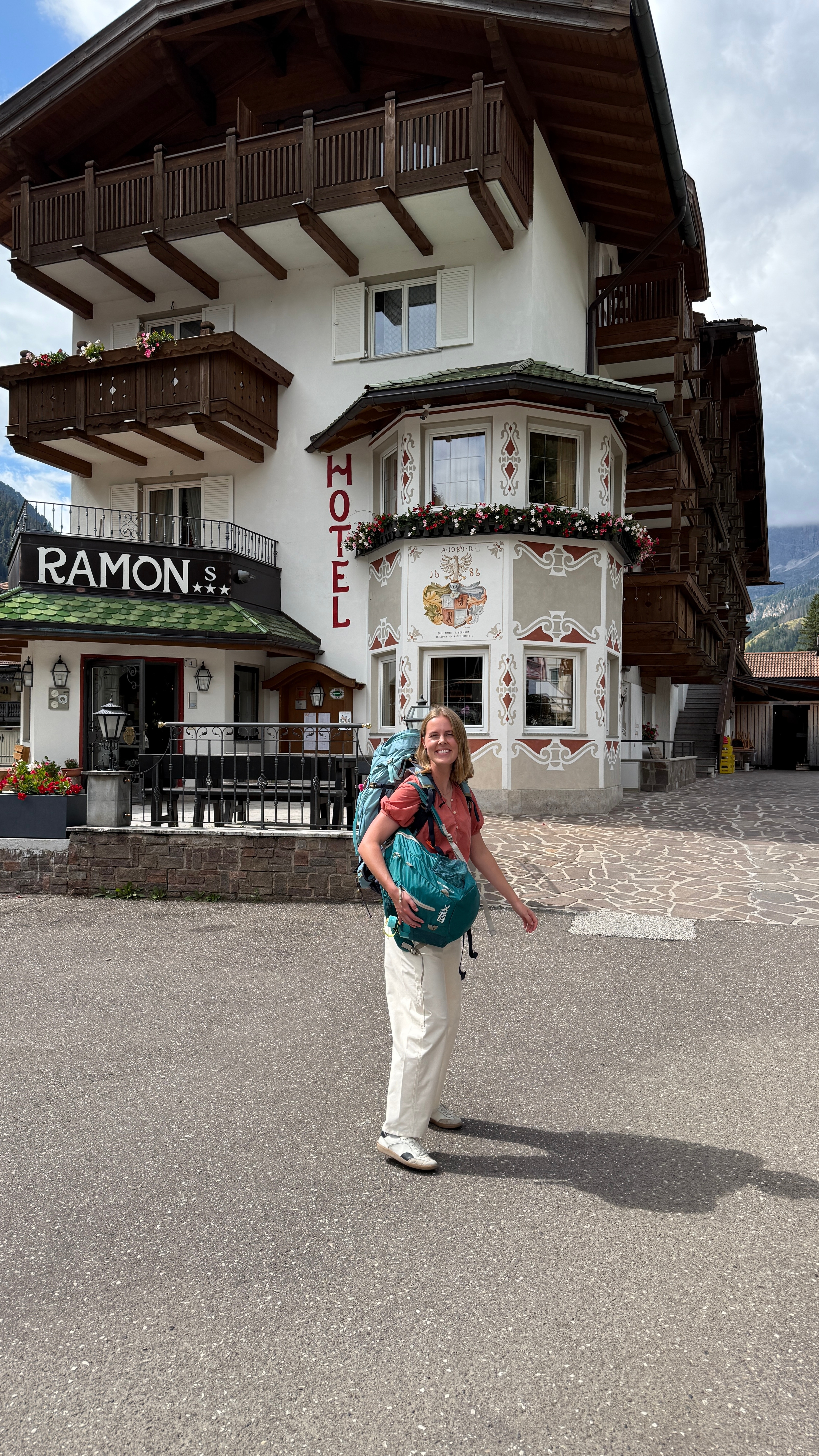 We arrived in Campitello di Fassa in the afternoon and spent the day wandering around the cute mountain town, breathing in the fresh air, walking up into the hills, stocking up for our trek at the Co-op, carb loading dinner, then an evening in the hotel's spa and sauna.