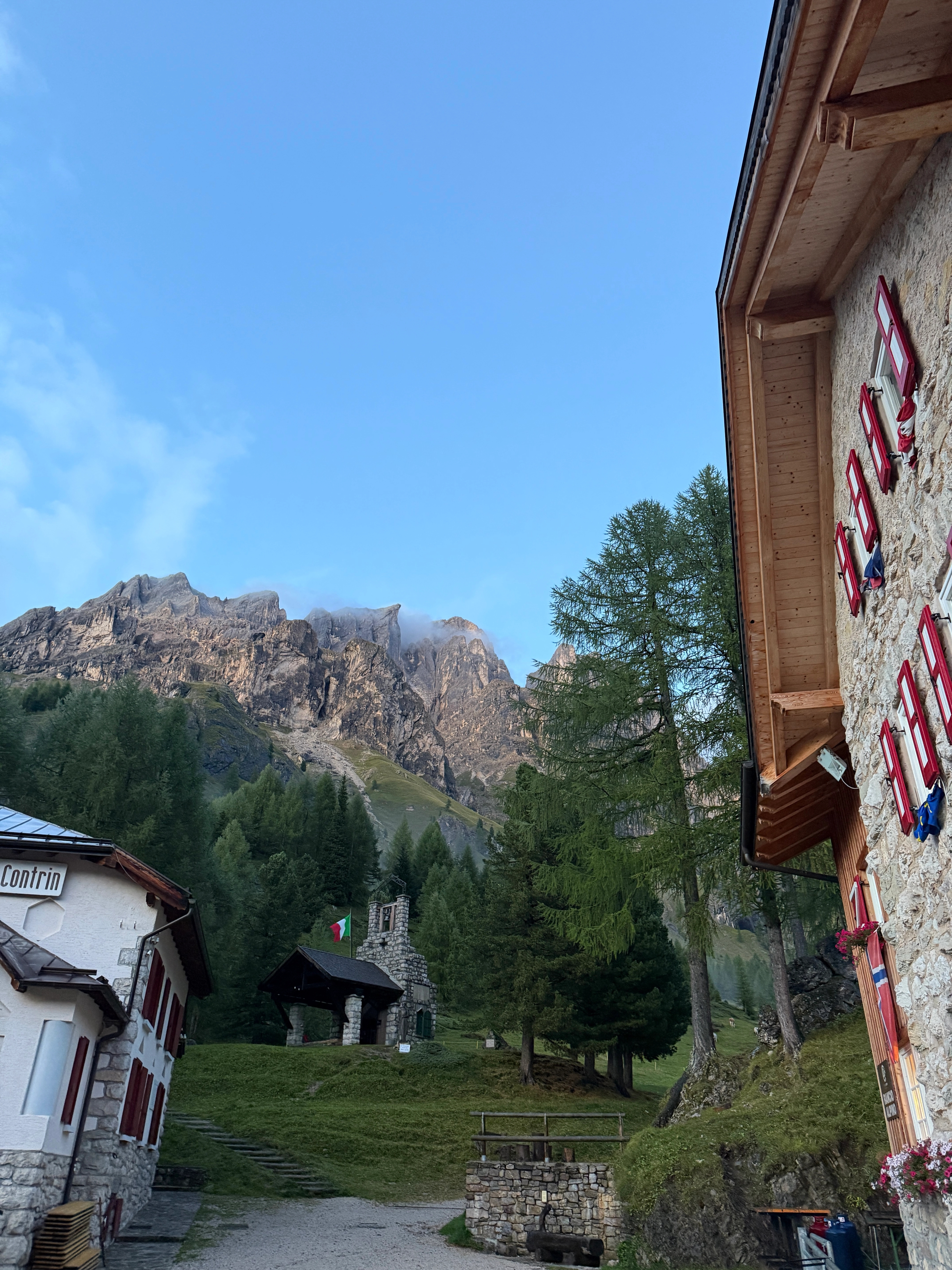Our last day of hiking was on the Cavallazza with amazing views across multiple valleys and dramatic peaks. This area was really interesting because it had lots of well-preserved remnants of WWI including caves in the mountain tops and trenches. Many of the trails in the Dolomites were created / used heavily during WWI so this is a big part of the history of this area. We ended the day and trek in San Martino di Castrozza which is a charming town. We were surprised by how similiar these Dolomites towns felt to towns we had been to in the Swiss Alps. Our final activity of the day was watching the sunset from an outdoor hot tub. Pretty much perfect.